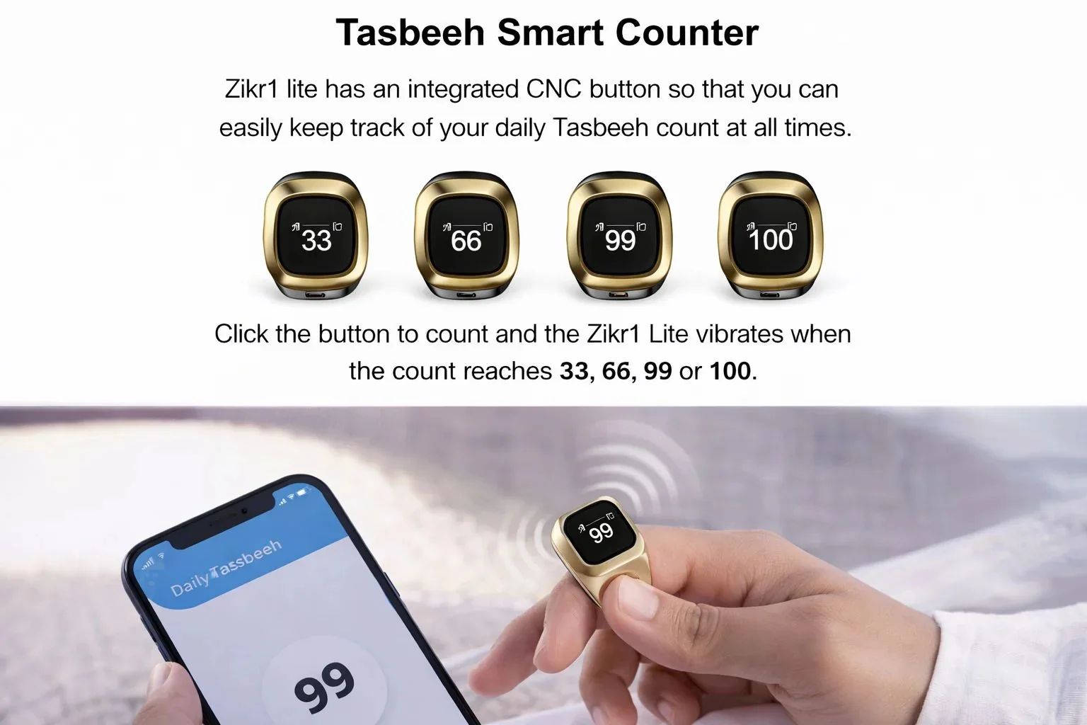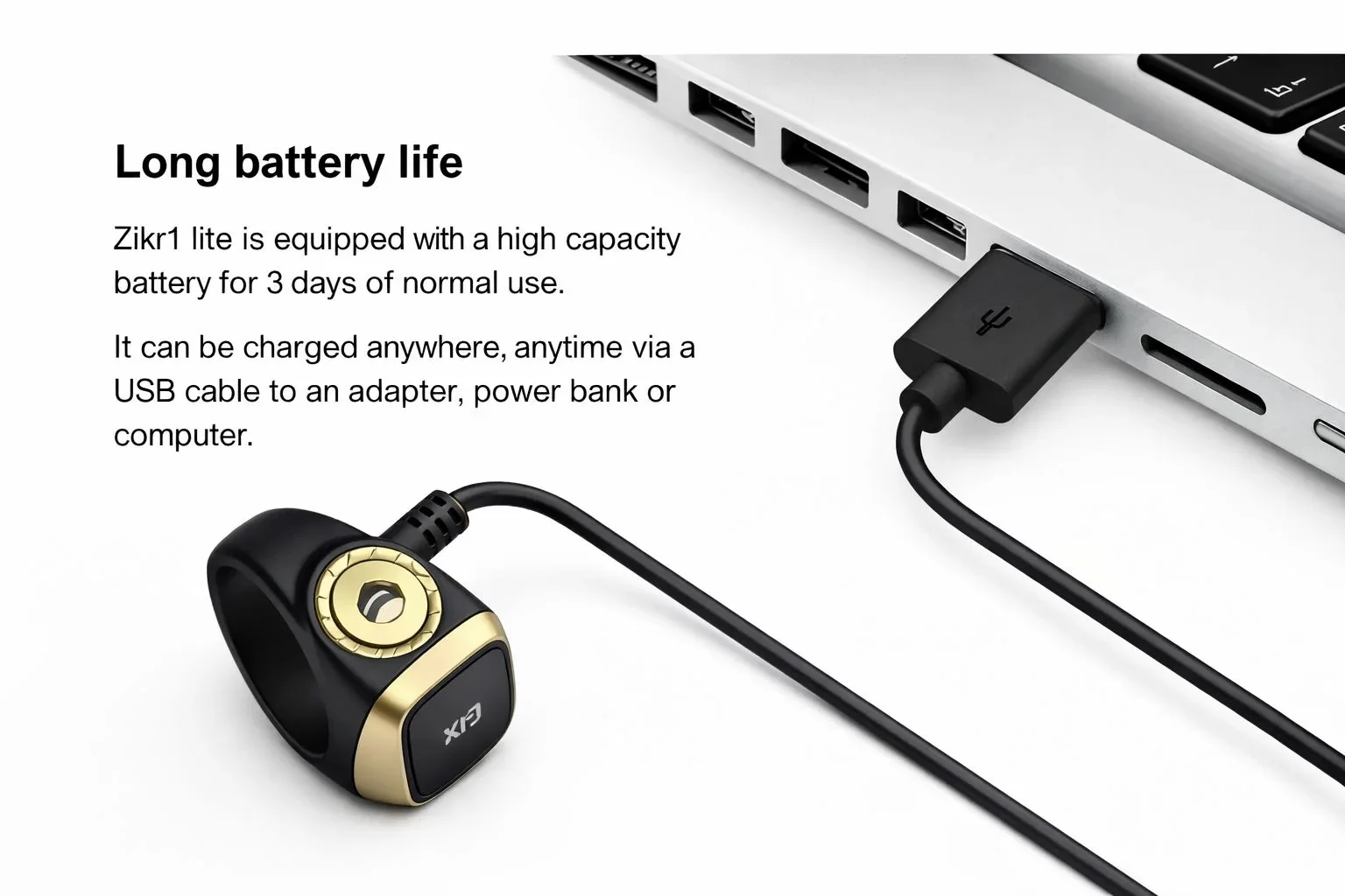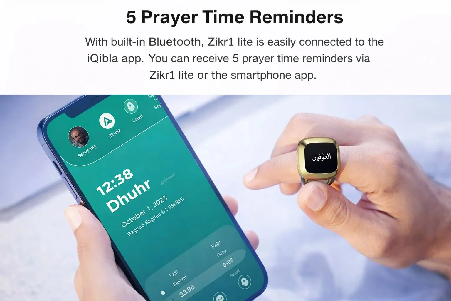 [تذكير بخمسة أوقات للصلاة] حافظ على تركيزك الروحي مع خاتم إقبالة للذكر الذي يذكرك بالصلوات الخمس اليومية. هذا الجهاز المبتكر القابل للارتداء يستبدل المسبحة التقليدية بتقنية متطورة لراحة أكبر.